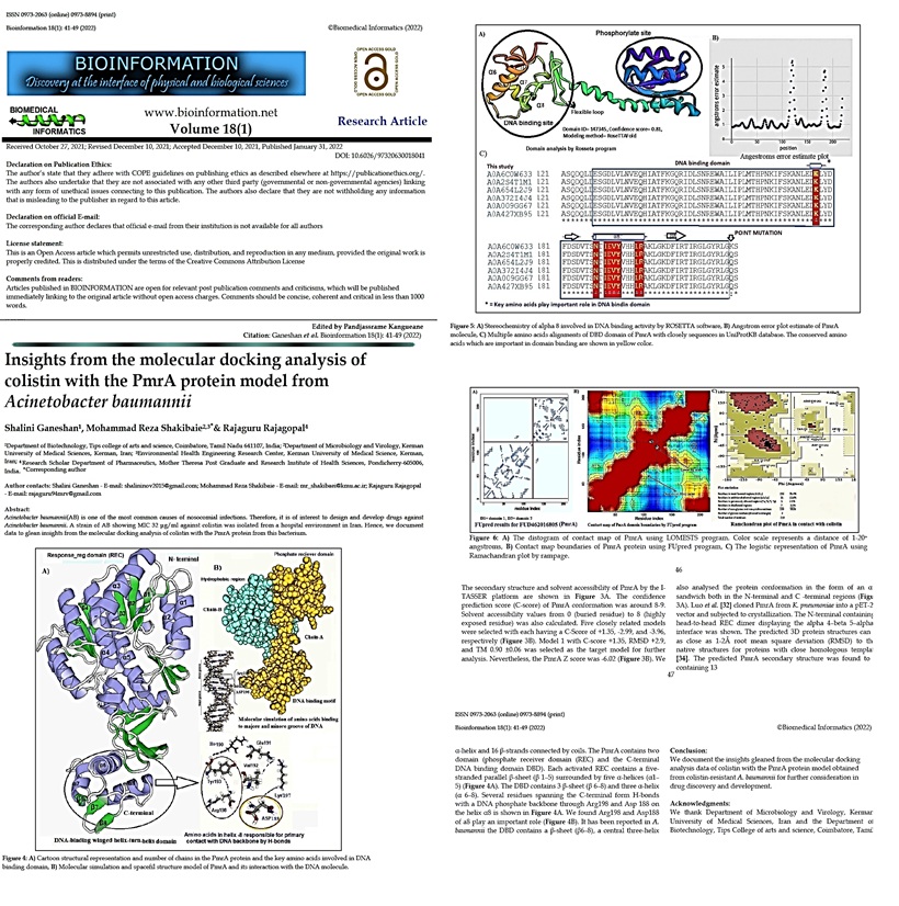 Acinetobacter baumannii(AB) is one of the most common causes of nosocomial infections. Therefore, it is of interest to design and develop drugs against Acinetobacter baumannii. A strain of AB showing MIC 32 μg/ml against colistin was isolated from a hospital environment in Iran. Hence, we document data to glean insights from the molecular docking analysis of colistin with the PmrA protein from this bacterium.